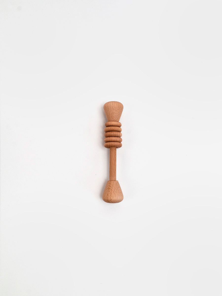 Each rattle is one of a kind, with its own natural grain, tone, and subtle wooden scent — a quiet reminder of the forest it came from.
